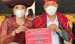 Keterangan foto : Henry Indraguna bersama istrinya memperoleh kehormatan marga batak karo. /foto: istimewa