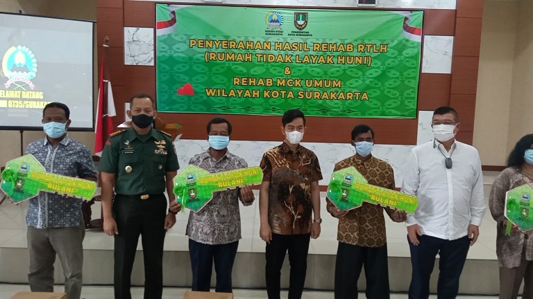 LOKABALI.COM- Walikota Surakarta, Gibran Rakabumingraka di dampingi Danrem 074/Warastratama beserta Dandim 0735/ Surakarta, menyerahkan kunci hasil renovasi Rumah Tidak Layak Huni ( RTLH ) kepada warga kota Solo yang telah menerima program renovasi RTLH.