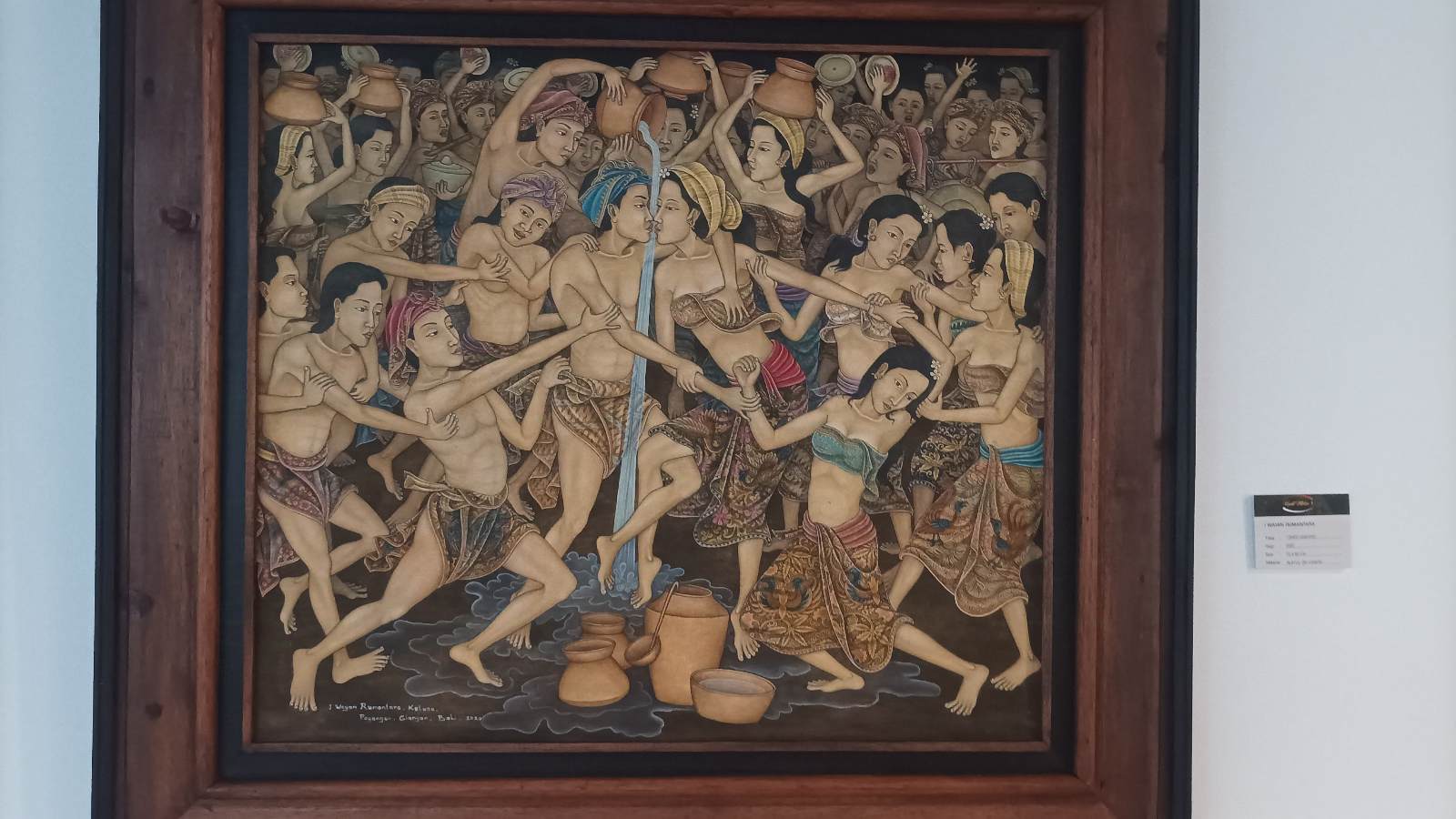 Seperti karya Omed-omedan, sebuah tradisi yang digelar saat Ngembak Geni atau sehari setelah Hari Raya Nyepi. Lukisan karya I Wayan Rumantara itu dibuat menggunakan cat akrilik pada tahun 2020. Media yang digunakan kanvas berukuran 70×80 cm.