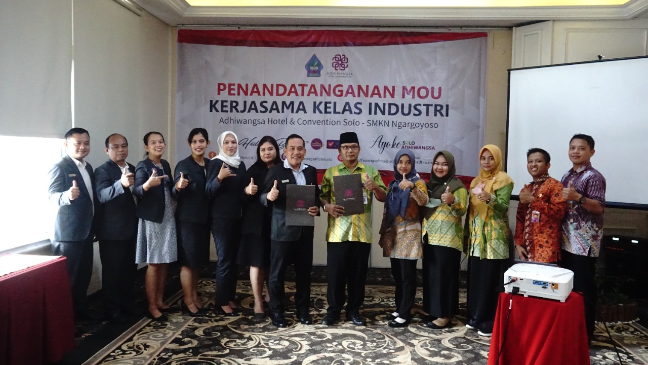 Kesepakatan Kelas Industri Adhiwangsa ini diselenggarakan dalam rangka penyelarasan hubungan kerjasama antara Adhiwangsa Hotel & Convention Solo dengan SMKN Ngargoyoso, terutama dalam hal sinkronisasi kurikulum antara materi sekolah dengan dunia usaha dunia industri.