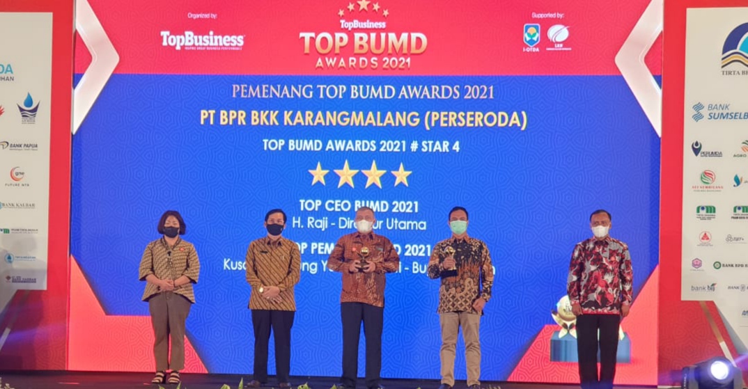 Selain memperoleh penghargaan bintang 4, Direktur Utama BPR BKK Karangmalang ( Perseroda), H. Raji juga terpilih sebagai TOP CEO BUMD 2021.