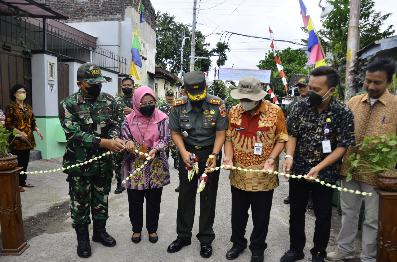 LOKABALI.COM-Dandim 0735/Surakarta Letkol Inf Devy Kristiono, S.E., M.Si bersama Kabag Tata Pemerintah Kota Surakarta, Drs. Gesang Prihanto.MM mewakili Walikota Surakarta melakukan pemotongan pita di lokasi Karya Bakti Daerah (KBD) tahap III di Kampung Pantisari Jl. Irian RT 2 , RT 3 RW 4 Kelurahan Tegalharjo Kecamatan Jebres. Rabu (26/10)