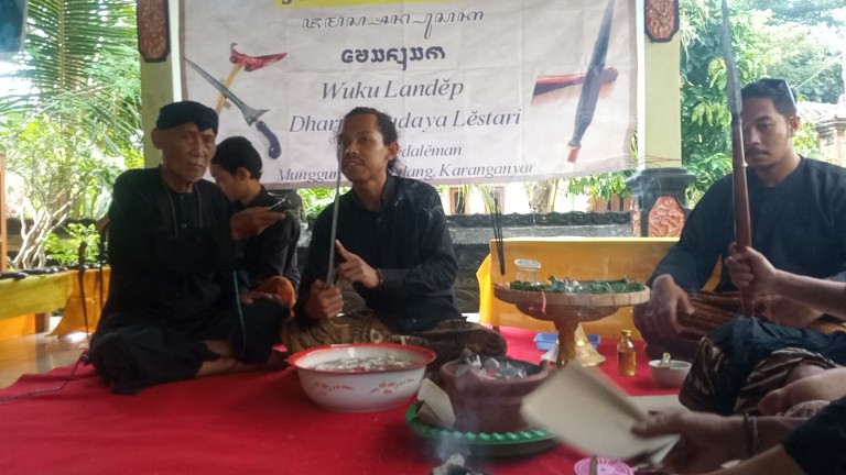 ‘Jamasan pusaka di selenggarakan bertepatan wuku landep dalam penanggalan jawa, pada malam Sabtu Kliwon.’ Terang Mbah Mur, selaku sesepuh Darma Budaya Lestari Karanganyar