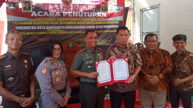 LOKABALI. COM-Dandim 0735/ Surakarta, Letkol Inf Devy Kristiono, S.E,.M.Si secara resmi menutup pelaksanaan Karya Bhakti Daerah (KBD) Tahap I, II, III Tahun 2023 di Kalurahan Kampung Baru, Kecamatan Pasar Kliwon. Kalurahan Joglo, Banjarsari dan Kalurahan Gandekan, Kecamatan Jebres.