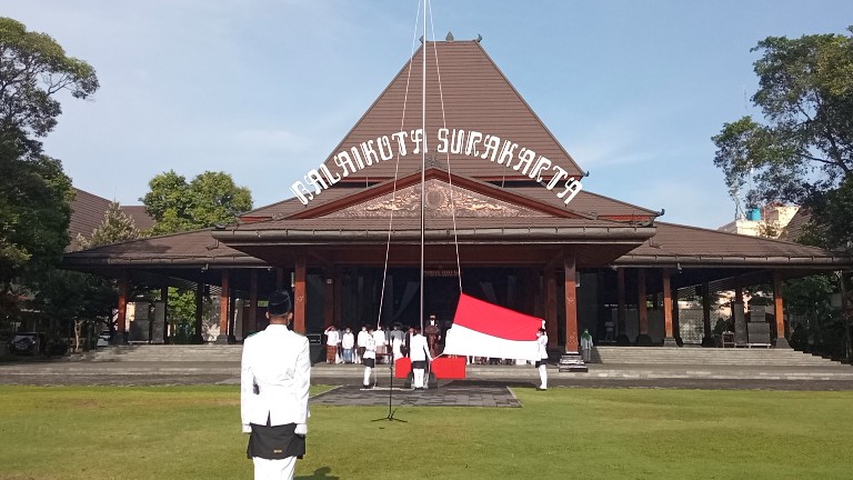Keterangan gambar : Walikota Solo Gibran Rakabumingraka tampak mengikuti upacara HSN 2022 di Balaikota Solo / Foto: Lokabali